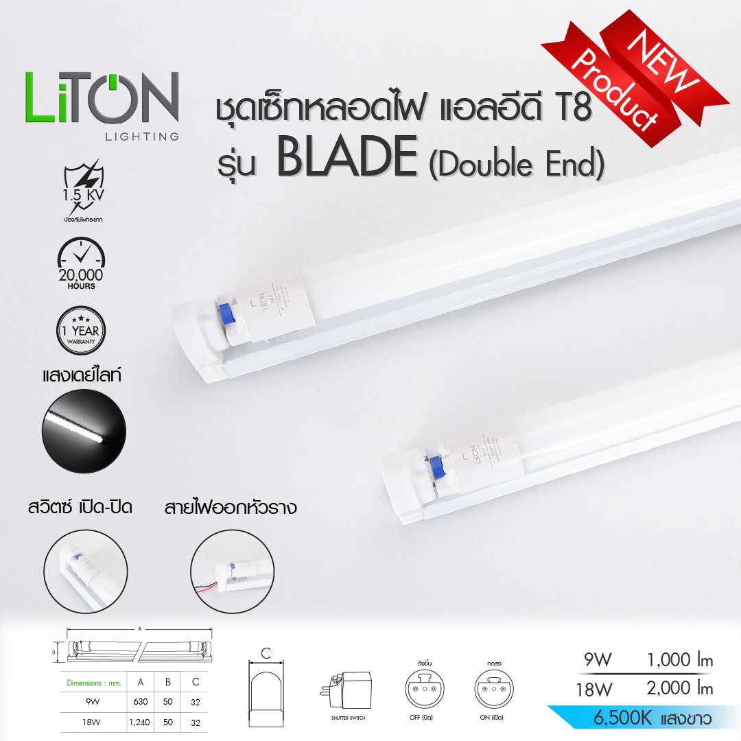 ชุดเซ็ท LED T8 Double End พร้อมสวิตช์ รุ่น BLADE เป็นชุดหลอดไฟ LED T8 ที่ออกแบบมาเพื่อความสะดวกในการติดตั้งและใช้งาน โดยมีคุณสมบัติเด่นคือ มาพร้อมกับรางไฟและสวิตช์เปิด-ปิดในตัว ทำให้ไม่จำเป็นต้องเดินสายไฟเพิ่มเติมสำหรับสวิตช์ควบคุมหลอดไฟโดยตรง