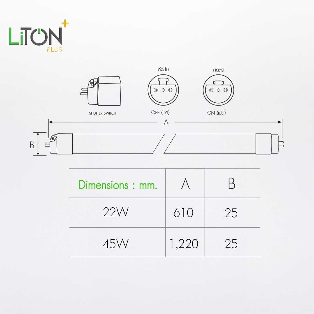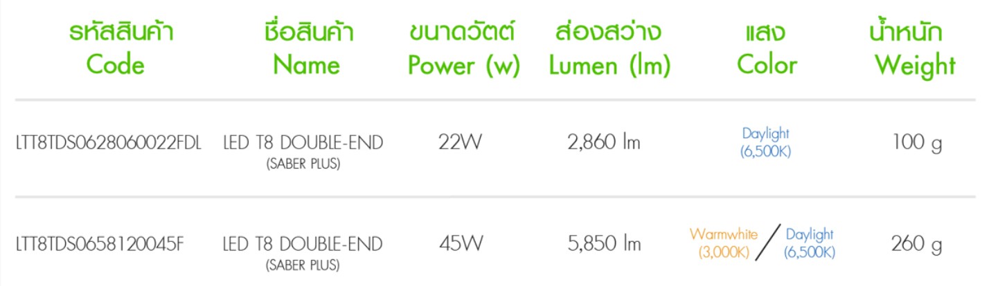 หลอดไฟ LED T8 Double End พร้อมสวิตซ์ รุ่น SABER PLUS ขนาด 45 วัตต์ และ 22 วัตต์
