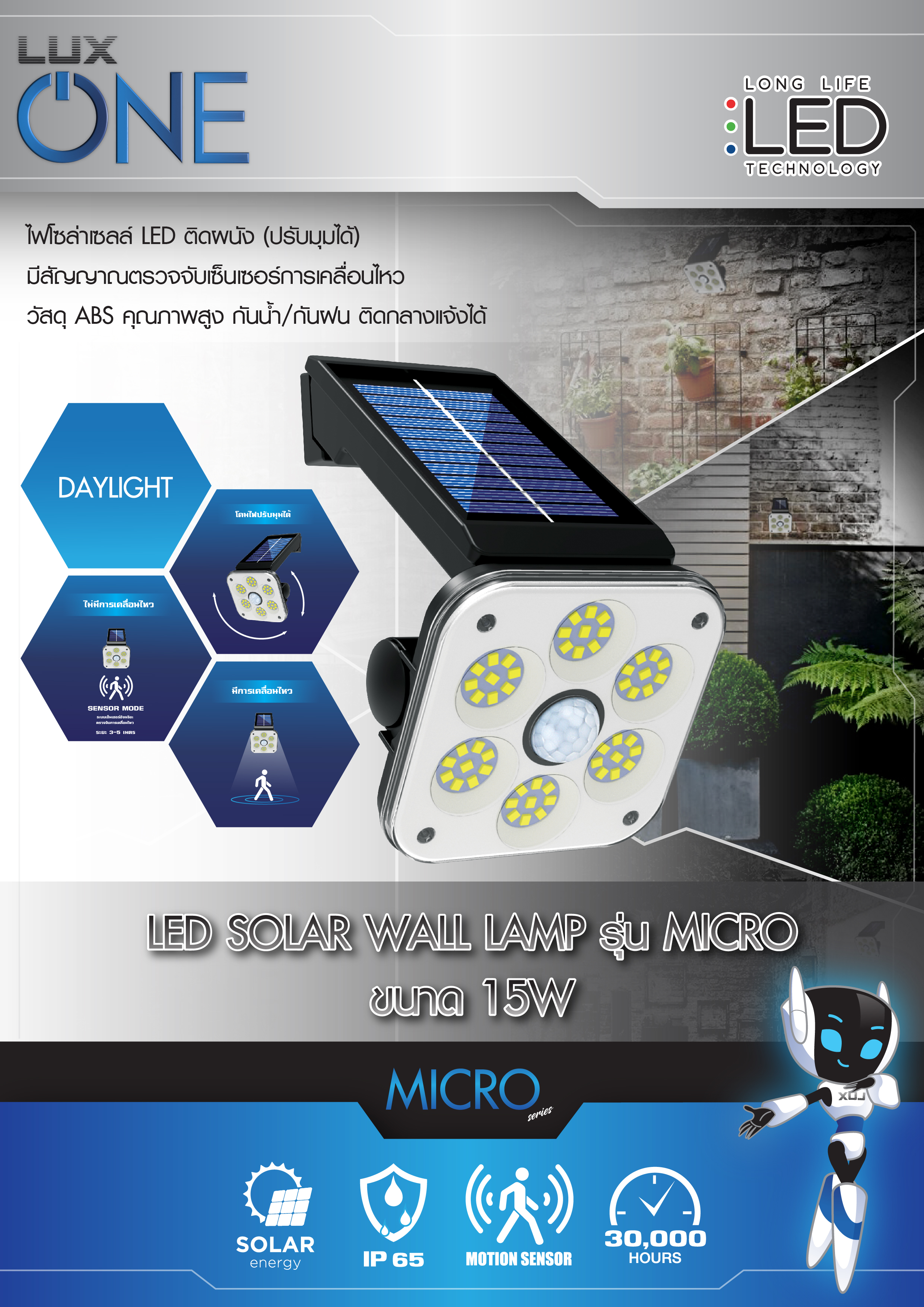 โคมไฟรุ่นนี้เป็นโคมไฟโซลาร์เซลล์แบบติดผนังขนาดเล็กที่เน้นความสะดวกในการติดตั้งและประหยัดพลังงาน เหมาะสำหรับให้แสงสว่างบริเวณทางเดิน รั้ว หรือกำแพงภายนอกอาคาร โคมไฟรุ่นนี้จึงเหมาะสำหรับผู้ที่ต้องการแสงสว่างอัตโนมัติบริเวณทางเข้าหรือรอบบ้านเพื่อความปลอดภัย